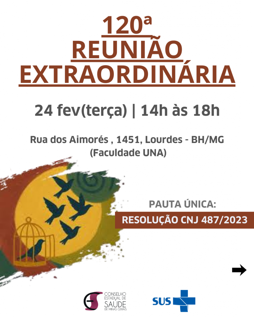 🗓️ No dia 24 de fevereiro, das 14h às 18h, será realizada a reunião que debaterá a Resolução CNJ nº 487/2023, que institui a Política Antimanicomial do Poder Judiciário e reafirma o compromisso com a Reforma Psiquiátrica, os direitos humanos e o cuidado em liberdade.