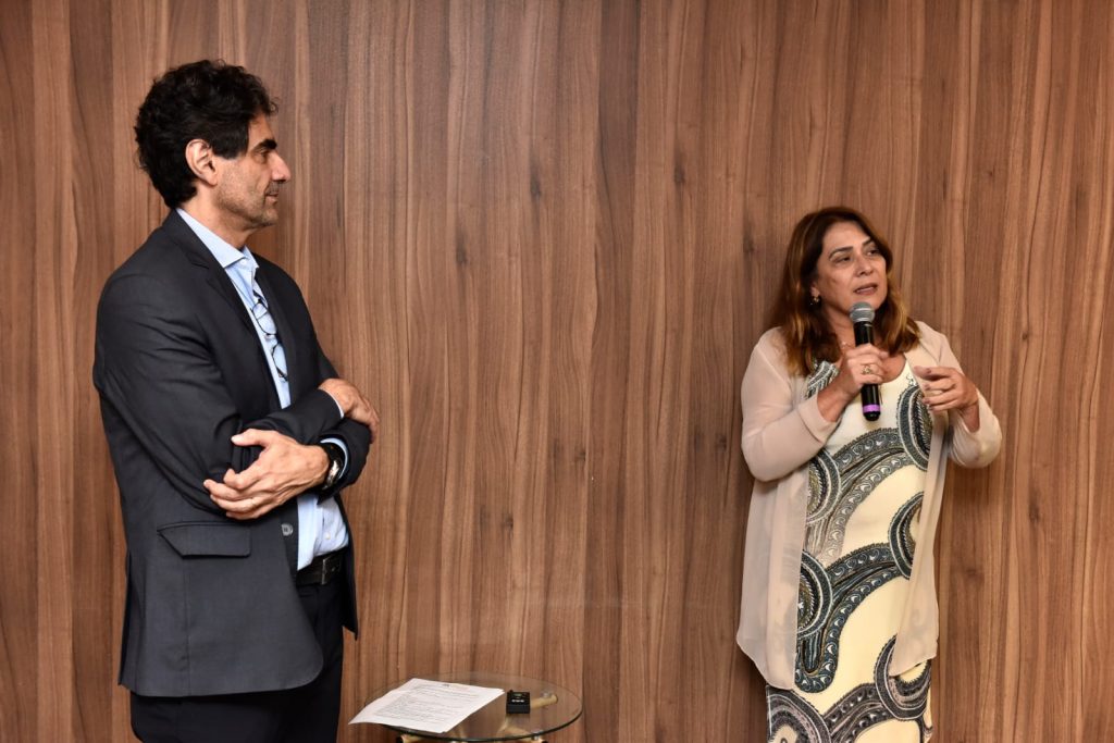 Junto da presidenta do CES-MG, estava a conselheira Maryane Rodrigues, representando os usuários e integrante da Associação Brasileira de Câncer do Sangue (ABRALE).