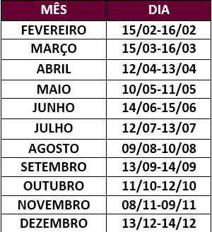 ATENÇÃO: Em breve os calendários de 2024 serão divulgados.